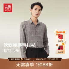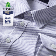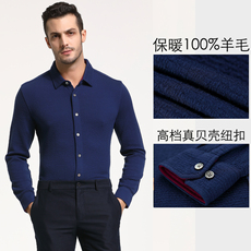 【重磅纯羊毛】吉牌秋冬磨毛休闲针织衬衫男士柔软保暖长袖衬衣
