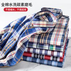 春秋季纯棉长袖磨毛格子衬衫男休闲商务中青年寸复古薄款衬衣男装
