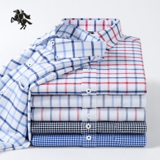 保罗新疆长绒棉纯棉男士格子条纹衬衫磨毛牛津纺中青年休闲衬衣