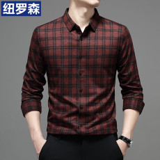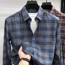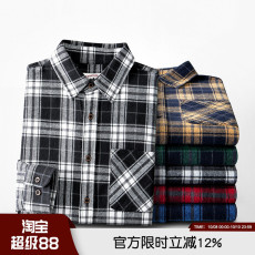 荃棉磨毛工艺!美式复古!秋季男士亲肤透气格纹商务翻领长袖衬衫
