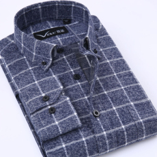 男士春秋新品绒布衬衫纯棉法兰绒格子新款磨毛中宽格商务修身衬衣