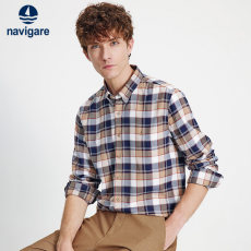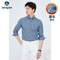 Navigare意大利小帆船磨毛格子衬衫男士2025秋季新款通勤长袖衬衣