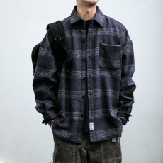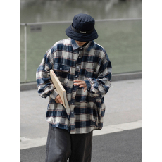 日系复古磨毛加厚格子衬衫男秋冬新款宽松口袋工装衬衣休闲外套潮