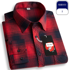纯棉磨毛衬衫男士秋冬季新款休闲中青年全棉扣领长袖红蓝格子衬衣