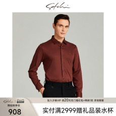 SATCHI沙驰男装男士长袖磨毛衬衫秋季新款纯棉商务红色衬衣男