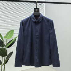 2025春秋新款保罗条纹纯棉长袖衬衫男士碳素磨毛百搭青年休闲衬衣
