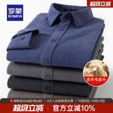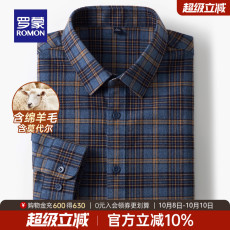 【含莫代尔+绵羊毛】罗蒙男士复古长袖衬衫2025秋季新款磨毛衬衣