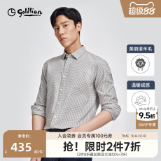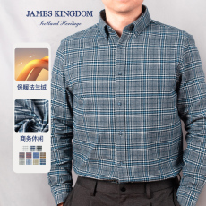 【含羊毛】金利来春季新款男士休闲衬衫格子磨毛保暖长袖衬衣