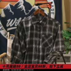 【玄夜】秋季日系休闲格纹长袖衬衫男宽松磨毛中性风潮牌翻领衬衣