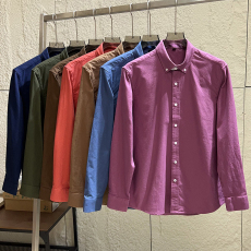 保罗100%纯棉男士磨毛长袖衬衫中青年休闲全棉牛津纺纯色大码衬衣