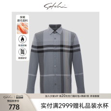 SATCHI沙驰男装男士磨毛长袖衬衫秋季新款商务保暖格子高端衬衣厚