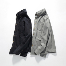 秋季外贸牛货日单休闲男长袖衬衫法兰绒寸衣简约修身磨毛衬衣灰色