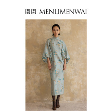 2025春秋新款提花奥黛旗袍连衣裙七分袖长款日常改良礼服女装外贸