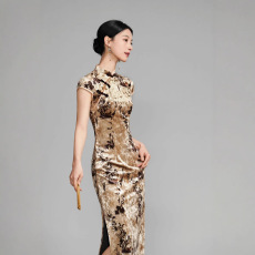 高端金丝绒连衣裙秋冬新款丝绒旗袍改良复古走秀妈妈装旗袍礼服女