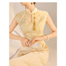 正品原版改良旗袍连衣裙2025春秋季款气质中长款礼服裙子