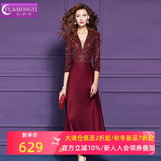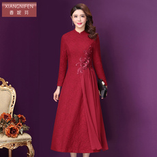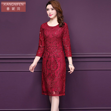 香妮芬新款秋季婚礼礼服女中年妈妈装高贵洋气中长款蕾丝连衣裙