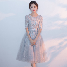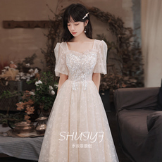 伴娘服蕾丝中长款2025新款气质香槟色宴会晚礼服连衣裙女仙气学生