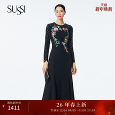 【蕾丝】GEGINA吉吉娜新款绣花礼服连衣裙女中长款圆领裙子