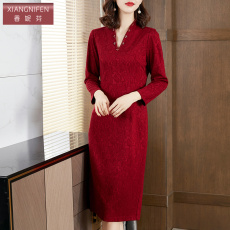 香妮芬2025春秋新款婚礼礼服中长款妈妈喜庆婚宴装洋气红色连衣裙