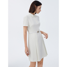 朗姿黑白色显瘦轻礼服中长款衬衫连衣裙女夏奥莱小黑裙高级感裙子