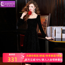 菲梦伊黑色连衣裙女冬季法式复古赫本风显瘦收腰中长款打底裙礼服