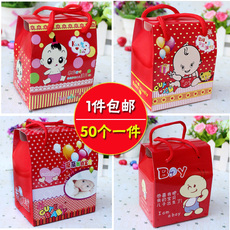 宝宝满月喜糖盒六一儿童节日礼品盒手提塑料喜糖盒子批发伴手礼盒