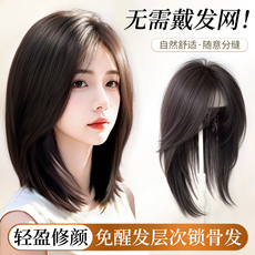 无需发卡魔术贴假发女片头顶补发蓬松颅顶自然前额真发刘海补发片