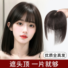 刘海假发女片头顶遮白发增发量真发蓬松高颅顶自然前额无痕补发片