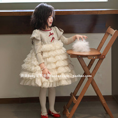 Baby keira女童秋冬镂空白色纯棉连衣裙女宝生日裙古董风公主洋装