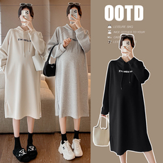 大码孕妇秋冬装卫衣外穿长款连衣裙300时尚洋气宽松纯棉连帽200斤