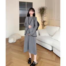 孕妇装秋装长袖针织连衣裙秋季马甲外套秋冬装两件套裙子孕妇套装