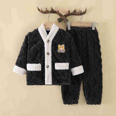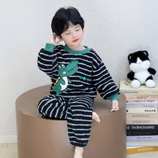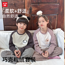 儿童睡衣套装秋冬季巧克力绒插肩长袖裤男女童空调服青少年家居服