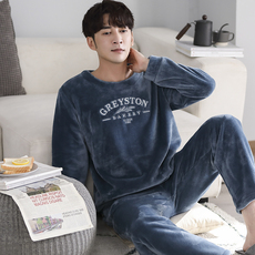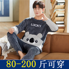 珊瑚绒睡衣男秋冬季加厚加绒保暖家居服青少年冬天法兰绒大码套装
