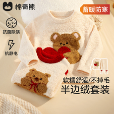 女童法兰绒睡衣冬款女孩男童加厚家居服秋冬季儿童宝宝珊瑚绒套装