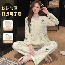 秋冬季空气棉月子服三件套春秋款纯棉产后孕妇睡衣哺乳产妇家居服