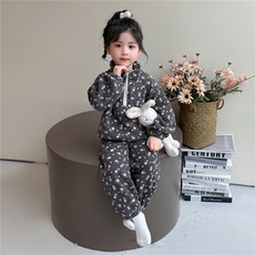 女童睡衣套装秋季纯棉儿童可爱家居服冬季夹棉空气棉宝宝防着凉A