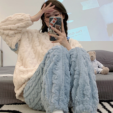睡衣女士秋冬季宽松大码加绒法兰绒保暖亲肤冬季新款珊瑚绒家居服