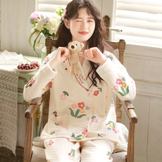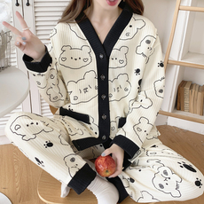 外贸秋冬季款 女士纯棉绒布印花睡衣套装开衫家居服宽松大码多色