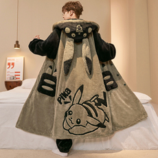 男士睡衣睡袍长款冬季珊瑚绒加厚加绒浴袍秋冬天法兰绒家居服男生
