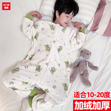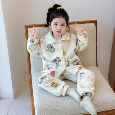 儿童睡衣男童秋冬季加厚款法兰绒女孩三层夹棉宝宝珊瑚绒家居服