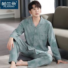 睡衣男士春秋款100%纯棉长袖秋冬款青年男款秋冬季全棉大码家居服