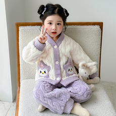 儿童睡衣秋冬2025新款女童开衫长袖家居服女孩大童绒德套装冬季