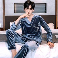 乐姿梦秋冬季新款男士金丝绒睡衣休闲韩版长袖V领春秋家居服套装