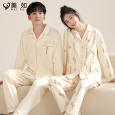 莱卡【高档面料】情侣睡衣女秋冬季纯棉长袖男款宽松家居服春套装