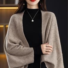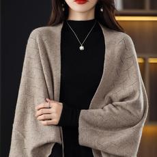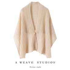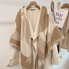 秋冬新款时尚羊绒针织披肩围巾宽松百搭外搭毛衣两用空调房外套