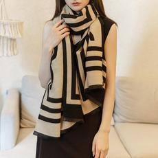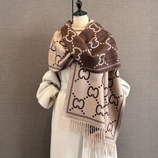 秋冬季仿羊绒小香风双C字母百搭围巾女时尚保暖双面两用披肩围脖