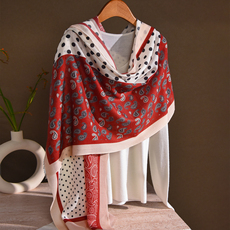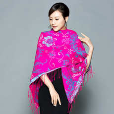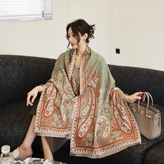 秋冬新款仿羊绒围脖加厚加长花卉围巾复古民族风披肩两用外搭