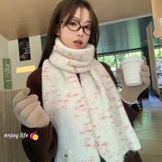 2025新款韩版保暖白色斑点围巾女秋冬季护颈围脖百搭防寒披肩两用