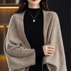 秋冬针织长袖外套披肩围巾两用新款色宽松百搭外搭斗篷开衫1006z