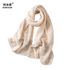 秋冬新款山羊绒菱形围巾女100%纯羊绒高档镂空纯色披肩围脖两用